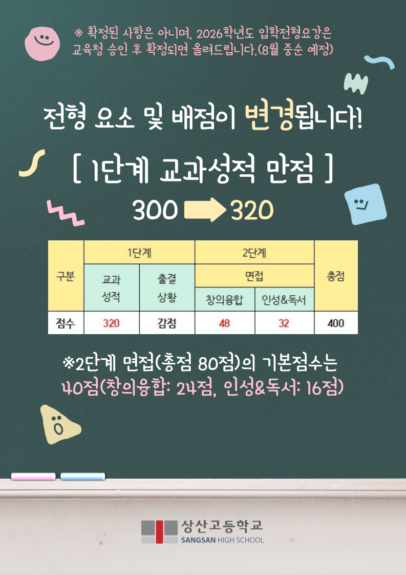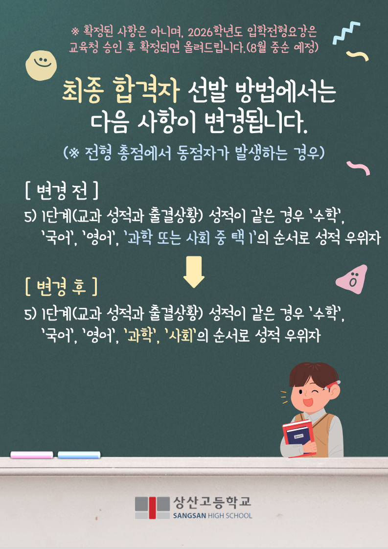 2026학년도 상산고 신입생입학요강 변경 예고