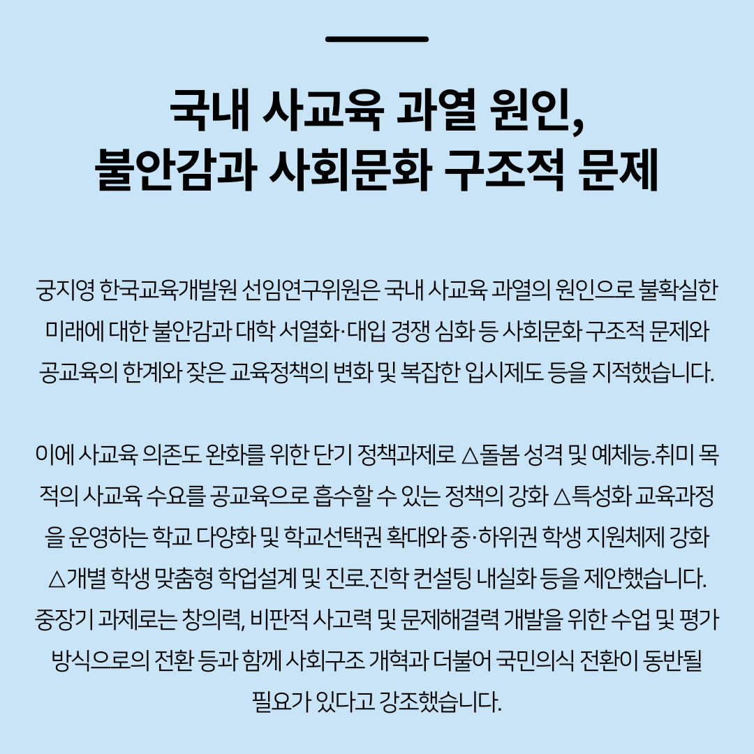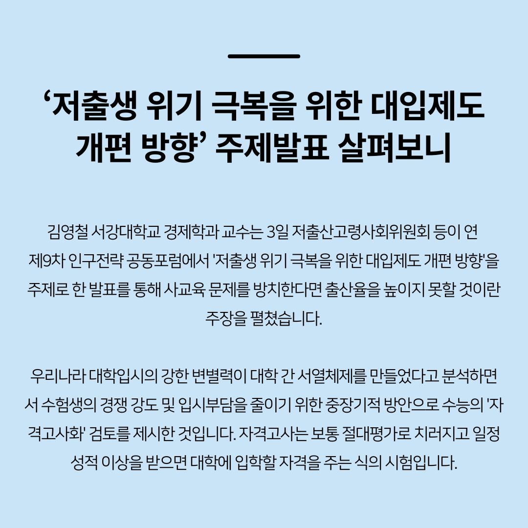 '저출산 문제는 사교육에서부터' 주장, 동의 하시나요?